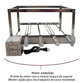 A linha de Grill Giratório Motor Fixo Issi Grill apresenta sua estrutura em chapa de aço inox 430 escovado com opção de 4,5,e 6 Espetos com kit elétrico rotativo Bivolt, ideal para churrasqueiras revestidas