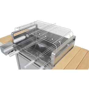 A Churrasqueira Giragrill Garden 2300 Premium toda em AÇO INOXIDÁVEL, com 5 espetos giratórios acionados por motor elétrico bivolt, espetos em inox com cabos de madeira revestidos em alumínio, proporcionam maior conforto térmico e durabilidade.
