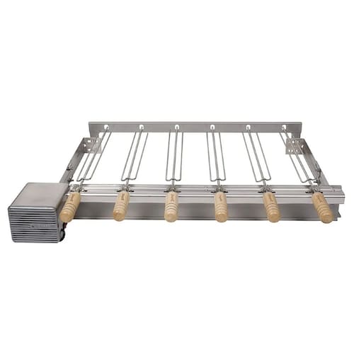 Apresentamos o Suporte Exclusivo para Churrasqueiras Pré-moldadas em Aço Inoxidável: Seis Espetos com Rotação Constante e Motor Elétrico Compatível com 110V e 220V.