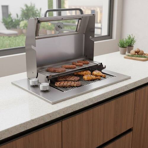 Leve modernidade e praticidade ao seu espaço gourmet com a Churrasqueira Grill a Gás Magnus. Com tampa em inox e veneziana de ventilação inclusa, ela é ideal para grelhar carnes, peixes e legumes sem fumaça. Conta com 2 queimadores infravermelhos, acendimento automático, termômetro embutido e estrutura em inox escovado. Compacta, é perfeita para nichos no estilo cooktop e acompanha grelha grill, grelha de descanso e um espeto.