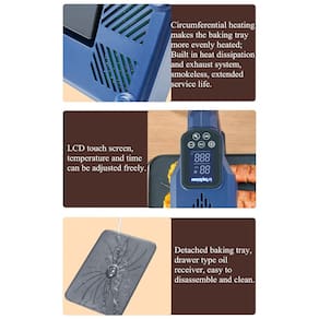 Churrasqueira grill elétrica com chapa antiaderente, ideal para até 2 porções. Possui grelha interna sem fumaça e funciona com infravermelho.