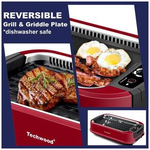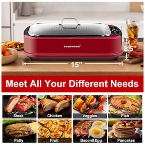 Churrasqueira grill elétrica com tampa de vidro temperado, placa antiaderente, controle de temperatura digital LED, aquece rapidamente e mantém a temperatura constante.Vendido e entregue por Ecletiq
