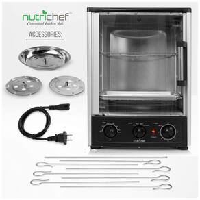ESTILO INOVATIVO E PROJETO Adição ideal a qualquer casa ou estabelecimento, Porta de vidro temperado conveniente e resistente ao calor. PREPARATIVA DE REFEIÇÃO VERSATIL Capacidade de cozimento multifuncional do forno, assar, assar, grelhar e apodrecer e muito mais QUALIDADE E CARACTERÍSTICAS Colocação segura em qualquer mesa ou bancada da cozinha, Elementos de aquecimento de alta potência, Cozinha com economia de energia e tempo, Configuração ajustável de tempo e temperatura. O QUE ESTÁ INCLUÍDO Suporte de espeto Kebab, assadeira e cremalheiras, resistente a manchas e fácil de limpar, Use o rack de kebab rotativo para obter resultados saborosos