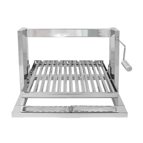 O "CleanLift" permite movimentar o quadro de espetos ou grelhas para cima ou para baixo através de movimentos circulares de manivela, proporcionando um controle preciso da temperatura de irradiação da brasa sobre carnes, legumes e frutas. Este mecanismo é totalmente embutido, sem cabos de aço ou dispositivos de transmissão visíveis. Independentemente do calor desejado, o Grillex Lift oferece sempre um ponto ideal na altura do quadro para garantir o máximo desempenho.