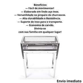 Com medidas aproximadas de 50 cm de comprimento, 28 cm de largura e 71 cm de altura montada, essa churrasqueira oferece versatilidade no preparo de churrascos. A grelha é fabricada em aço inox, o que garante maior durabilidade e facilidade na hora da limpeza. Além disso, possui um cabo de madeira para facilitar o transporte.