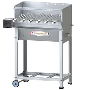 A churrasqueira a carvão com espeto giratório é ideal para quem procura um equipamento rápido e eficiente para assar carnes no espeto, mantendo sua qualidade e sabor. Sua estrutura é confeccionada inteiramente em chapa de aço inox 430, além de seus espetos, garantindo máxima resistência e durabilidade a churrasqueira profissional. Suas laterais e seu fundo são inteiramente fechados, por isso acender a churrasqueira fica muito mais fácil, já que o vento não atrapalha essa função. Possui 6 espetos giratórios que funcionam através de um motor bivolt, dessa forma é possível manter os alimentos assados e suculentos por completo. A caçamba desta churrasqueira a carvão possui rodas para facilitar sua locomoção e sapatas revestidas com PVC para não agredir a superfície em que será instalada.