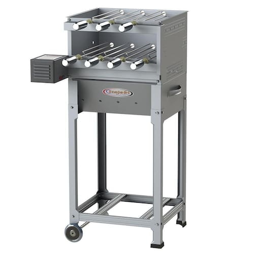 CHURRASQUEIRA DUPLA A CARVÃO COM 9 ESPETOS ELÉTRICO GIRATÓRIOS