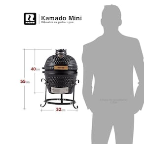 Descrição 1000 caracteres - O Kamado Mini é uma churrasqueira premium ideal para um casal e facilmente cabe em pequenas varandas gourmet. Ela Grelha, Sela, Defuma e Assa: prepare desde o churrasco tradicional na grelha até deliciosos Hambúrgueres. O Kamado da Rasco utiliza pouquíssimo carvão e, por isso, produz POUCA FUMAÇA. Sua estrutura refratária com isolamento oferece máxima retenção de calor, necessitando de menos combustão para atingir e manter a temperatura desejada que pode ser acompanhada no termômetro embutido. Acender o carvão é rápido e fácil devido ao adequado suprimento de oxigênio e a temperatura ideal é alcançada em instantes. Além disso, o carvão excedente pode ser aproveitado no próximo churrasco. Fácil de Limpar: além de ser autolimpante, basta remover as cinzas através da porta frontal. Produzida com materiais de alta durabilidade e resistência como Cerâmica Refratária, Pintura Premium resistente às ações do clima, Aço Inox, madeiras em bambu antibacteriano e Ferro Fundido.