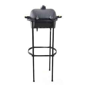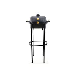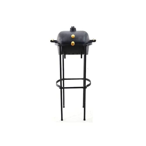 Churrasqueira Média Bafo Alumínio Craqueada Preta Com Pé Suporte