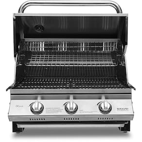 3 queimadores (controlados separadamente)Acendimento automáticoTermômetroBandeja para retirada de gorduraGrelhasFunciona também a bafoEste aparelho é adequado somente para uso com gás butano de baixa pressão, gás propano ou misturas de GLP quando equipado com um registro de baixa pressão apropriado através de uma mangueira flexível. ESPECIFICAÇÕESNOME DO PRODUTOChurrasqueira de Bancada Inox a GásCORInoxQUANTIDADE DE PEÇASCAIXA INDIVIDUAL1CAIXA MASTER-CÓDIGOSKUCH3001IXEAN CAIXA789.651.850.702-4DIMENSÕES(Larg.xAlt.xProf. cm)PRODUTO SEM CAIXA69,0x77,0x57,5 (altura c/ tampa aberta)PRODUTO COM CAIXA81,5x59,0x53,0PESOS (kg)PRODUTO SEM CAIXA28,0PRODUTO COM CAIXA39,0