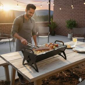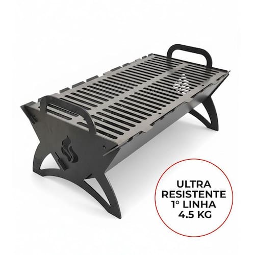 Montagem e Desmontagem Simples: A churrasqueira foi projetada com encaixes de fácil montagem e desmontagem. Montar e desmontar sua churrasqueira nunca foi tão simples, permitindo que você a leve para onde quiser e a guarde de forma compacta.