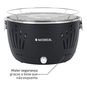 Churrasqueira portátil a carvão com design compacto e moderno. Estrutura robusta para durabilidade e segurança. Montagem rápida e intuitiva. Sistema de ventilação eficiente para queima uniforme do carvão. Grelha de qualidade superior resistente e fácil de limpar. Ideal para varandas, acampamentos e piqueniques.Vendido por Home Living e entregue por PontoFrio
