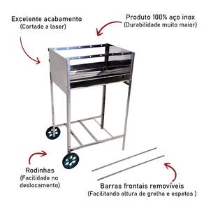 Churrasqueira Portátil com Rodas 5 Espetos Issi Grill Juntar a família e amigos numa verdadeira churrascada é um hábito entre brasileiros e por isso a Issi Grill desenvolveu uma linha completa para churrasco desde churrasqueiras, espetos, acessórios para atender aos mais exigentes churrasqueiros de plantão. Agora seu churrasco fica mais completo e sem dúvida mais saborosa, ao nível das melhores churrascarias do Brasil. Suas carnes ficarão mais suculentas e com um visual diferenciado Agora na Issi Grill você encontra esse e muitos outros produtos para churrasco CARACTERÍSTICAS DO PRODUTO:Estrutura inox 430Super prática ACOMPANHA:01 Churrasqueira Portátil com Rodas. DETALHE IMPORTANTE:Churrasqueira móvel podendo ser movida através de rodas. DIMENSÕES:Largura: 60cmProfundidade: 45cmAltura Total: 90cmPeso Bruto: 5 Kg Aviso Importante: Evite Acidente com Fogo, Proteja sua família ITEM INCLUSO:01 Churrasqueira com Rodas Dúvidas Frequentes:Qual material do produtoR: Feito em aço inox 430 de excelente qualidade e durabilidade. Marca: Issi Grill