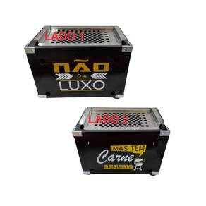 Churrasqueira portatil personalizada não tem luxo ,camping praia DescriçãoChurrasqueira:- altura = 31cm- comprimento = 44cm- largura = 29cm- peso: 4,5kgGrelha:- comprimento = 35,5cm- largura = 20cm Material- caixa externa em chapa de aço galvanizado- tanque interno em inox- grelha em inox- pintura eletrostática a pó (não solta a estampa com o calor)- possui alças para carregar