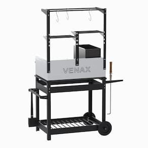 Tipo: Churrasqueira portátil Marca: Venax Revestimento externo da churrasqueira: Inox 304 Revestimento interno da churrasqueira: Aço esmaltado com base em tijolo refratário Tipo de braseiro (Fire Box): Fechado e móvel, pode ser utilizado nos 2 lados Material braseiro (Fire Box): Aço carbono revestido com esmalte vítreo Grelha: Estilo Argentina esmaltada Coletor de gordura: Aço esmaltado Varal de carnes e legumes: Duplo removível, com pintura epóxi Ganchos: Inox 304 maciço Grelha de apoio: Arame liso esmaltado. Descanso: Lateral em chapa Inox 304 Suporte para lenha: Revestido em pintura epóxi Dimensões da grelha principal (C x L): 50,7cm x 46cm Dimensões braseiro (Fire Box) (C x L x A): 21,5cm x 46cm x 25cm Medidas do produto: Altura 171cm - Largura 123cm - Profundidade 84cm