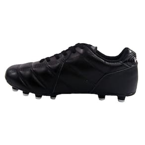 Fabricada em couro, a chuteira se ajusta facilmente ao pé. O modelo traz um desing novo, toda na cor preta, com travas indicadas para campo de grama natural.