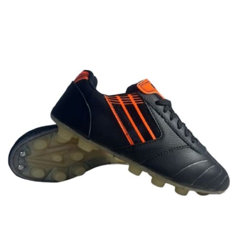 Chuteira com Bico de Couro ,Protetor da calcanhar em Couro, Ponta da lingueta e Região do cadarço em couro (Super Resistente e confortável). Solado em PVC super resistente e todo costurado, produto ideal para campos mais duros de terra. (a mais resistente da categoria).