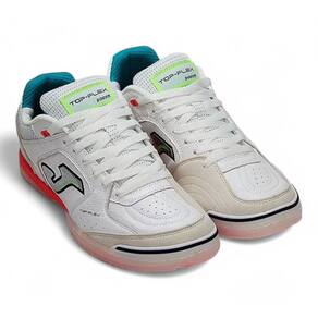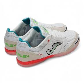 A Chuteira Joma Top Flex Futsal possui um cabedal em couro natural que proporciona maior conforto aos seus pés, além de pontos estratégicos reforçados em camurça para melhorar a precisão do chute e aumentar a durabilidade. Possui também, palmilha em EVA removível aliada a uma outra palmilha fixa costurada na base da chuteira que permite melhor acomodação ao pé do jogador, uma entressola que combina amortecimento e flexibilidade na medida exata, e um solado super-resistente e flexível, sendo assim, um ícone do futsal!