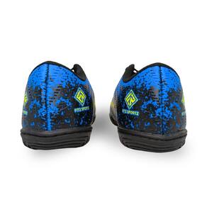 - Marca Fitz Sportz - Cabedal (parte superior): Confeccionado em material sintético resistente, com acabamento texturizado e estampa em degradê de preto e prata com detalhes em azul, proporcionando durabilidade e estilo. - Fechamento: Cadarço tradicional para ajuste firme e seguro. - Solado: Emborrachado antiderrapante com padrão geométrico que garante excelente tração e aderência nas quadras indoor. - Palmilha: Macia, proporcionando maior conforto e absorção de impacto durante o jogo. - Forro interno: Revestido com tecido acolchoado para maior conforto e ventilação. - Peso: 228g - Origem: Nacional