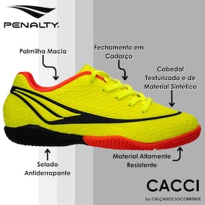 Criada pela Penalty, a chuteira linha Storm XXI, é a melhor proposta para os jovens craques de plantão reinarem em seus jogos de futsal. Com cabedal em sintético, o calçado possui acolchoamento na região do calcanhar e traz solado com função antiderrapante.