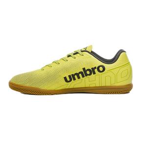 A Chuteira Futsal Umbro Techno apresenta um design moderno e imponente, com uma superfície grip na parte frontal que auxilia no controle direcional da bola durante passes e chutes. Seu grafismo com efeito 3D adiciona um toque estiloso para os jogadores em quadra.