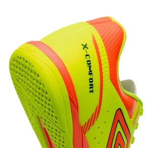 Nome: Chuteira Umbro Futsal X-Comfort Gênero: MasculinoIndicado para: Futsal Cor: Amarelo neon e rosa neon Tecnologia: Tecnologia de respirabilidade BREEZE SYSTEMCabedal: Sintético Entressola: EvaLingueta: Fina e macia Palmilha: Removível Solado: 60% Borracha, 40% EVAFechamento: Cadarço Marca: Umbro Código do Artigo: U01FB00220-601 Observação: As imagens dos produtos são ilustrativas e podem apresentar pequenas variações de cor em relação ao produto real. Isso pode ocorrer devido à iluminação, configuração da tela ou outros fatores
