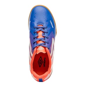 Cabedal confeccionado em material laminado de fácil limpeza e manutenção. Possui grafismos em “layers” com aplicação de verniz incolor sobre as artes, Diamante Umbro em destaque na lateral, assinatura do modelo na parte frontal e palmilha interna macia em EVA com tecido forrado. O solado de futsal é composto por blenda de PVC e TPU, que oferece aderência ao solo e durabilidade.
