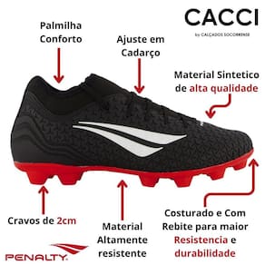 Máximo desempenho dentro das quatro linhas. Desenvolvida para dar um show, a Chuteira de Campo Penalty S11 Locker XXI é a escolha perfeita para os atletas que procuram qualidade, conforto e estilo na hora de bater uma bola com os amigos ou disputar um campeonato. A flexão e movimentação dos pés devem ser feitas de maneira correta, pensando nisso, a Penalty acrescentou a tecnologia Locker: a famosa botinha, que proporciona mais estabilidade e conforto durante os movimentos. Para se tornar um craque, você precisa ter o mesmo material que os profissionais usam. Adquira a sua e marque um golaço!