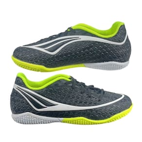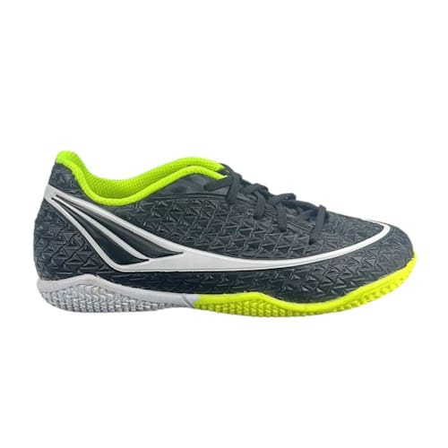 Solado emborrachado com tecnologia de tração: oferece excelente aderência nas quadras indoor, evitando escorregões e proporcionando mais controle da bola.