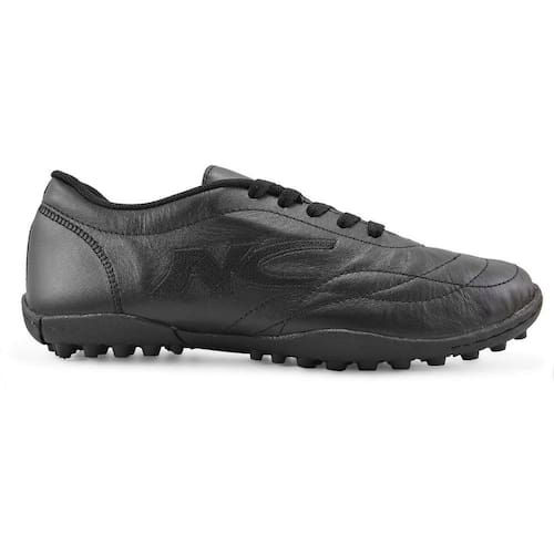 Ideal para jogos de futebol society e suíço, a chuteira New Camp possui o design predominantemente em preto, com o cabedal fabricado em couro e várias costuras dispostas sobre ele que proporcionam um ajuste perfeito ao pé e um ótimo controle de bola. O solado é fabricado em borracha, muito flexível, com garras baixas e costura na parte frontal.