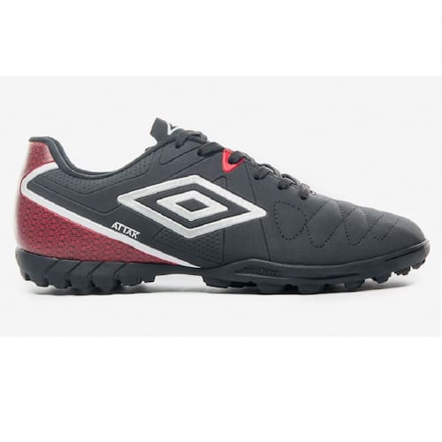 A chuteira de Society Attak Eternal traz renovação e modernidade ao clássico modelo da Umbro sem perder sua grandiosa essência. O cabedal é construído em material laminado com aplique de alta-frequência, detalhe diferenciado no Diamante Umbro e costura programada na parte frontal, preservando esse detalhe clássico e combinando com serigrafia e detalhe de textura gráfica. Solado de futebol HG construído em borracha.
