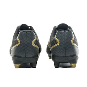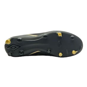 A Chuteira Umbro Attak Eternal Campo Masculina Preto Dourado Grafite traz renovação e modernidade ao clássico modelo da Umbro sem perder sua grandiosa essência. Seu cabedal é construído em material laminado com aplique de alta-frequência, detalhe diferenciado no Diamante Umbro e costura programada na parte frontal, preservando esse detalhe clássico e combinando com serigrafia e detalhe de textura gráfica. Solado de campo FG de 10 travas + 2 travas centrais de tração em TPU com travas bicolores posicionadas.