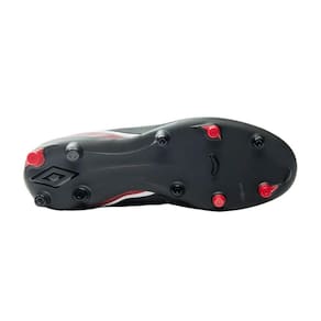 A Chuteira Umbro Attak Eternal Campo Masculina Preto Prata Vermelho traz renovação e modernidade ao clássico modelo da Umbro sem perder sua grandiosa essência. Seu cabedal é construído em material laminado com aplique de alta-frequência, detalhe diferenciado no Diamante Umbro e costura programada na parte frontal, preservando esse detalhe clássico e combinando com serigrafia e detalhe de textura gráfica. Solado de campo FG de 10 travas + 2 travas centrais de tração em TPU com travas bicolores posicionadas.