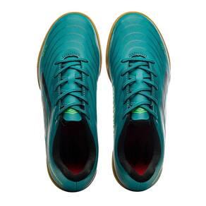 A Chuteira Umbro Glaze Futsal Indoor Masculina Alexandrite Preto Verde segue um visual minimalista com cores foscas e linhas fluidas brilhantes que trazem elegância e modernidade para o modelo. As texturas no cabedal auxiliam o controle direcional de bola nos momentos dos passes e dribles dentro das quadras. Cabedal confeccionado em material fosco laminado e texturizado. Possui forro em tecido com acabamento luvado, aplicação de grafismo linear em ton sur ton com efeito glow, Diamante Umbro em destaque na lateral, assinatura Glaze aplicada na parte frontal e palmilha macia em EVA com tecido forrado. O solado de futebol indoor é construído em borracha resistente com função antiderrapante.