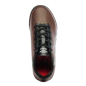 A Chuteira Umbro Techno Jr Society Infantil Preto Laranja Branco é ideal para jovens jogadores de gramado sintético, com estilo único traz grafismos 3D na área do chute. O cabedal laminado oferece durabilidade, já o forro traseiro em mesh respirável garante conforto. A palmilha forrada e macia em EVA traz amortecimento, já o solado de futebol society HG em PVC confere tração e estabilidade.