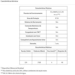Pressão de Funcionamento 10 a 400kPa 1,0 a 40 m.C.A.
