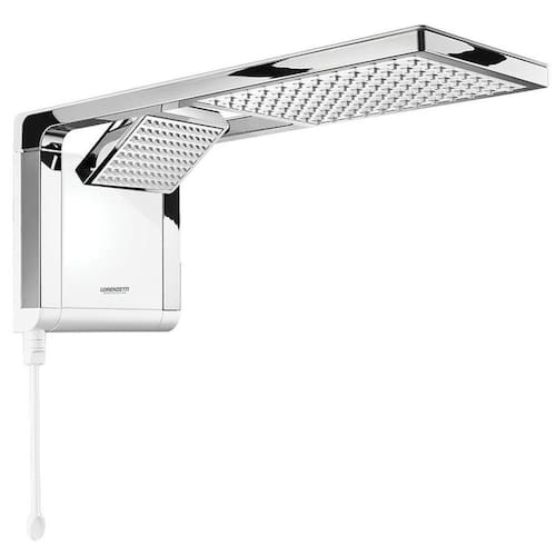 Características - Ducha e Chuveiro em um só produto - Escolha a opção do seu banho. - Tecnologia Press Plus - Jatos de alta performance mesmo com baixa pressão. - Exclusiva resistência Loren Ultra - Longa duração em comparação as resistências comuns. - Resistência de troca rápida Loren Ultra - Exclusivo cartucho que garante uma troca rápida e segura. - Comando eletrônico - Permite a escolha gradual e precisa da temperatura. - Haste de comando - Controle de temperaturas e seleção do tipo de jato ao alcance das mãos (uso opcional). - Fácil instalação - Em poucos passos a ducha é instalada ou removida. - D.R.I. - Dispositivo de Regulagem de Inclinação. - Ducha manual com design exclusivo. - Compatível com aquecimento solar e outros sistemas de aquecimento.