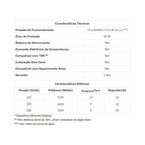 - Pressão de Funcionamento: 10 a 400kPa (1 a 40mca)