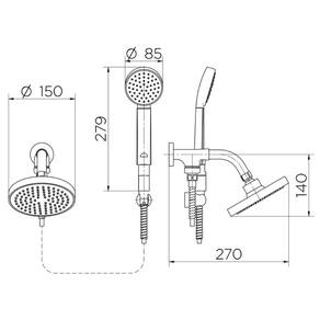 Conteúdo da embalagem: 1 canopla, 1 anel o-ring, 1 corpo de chuveiro, 1 desviador, 1 ducha manual, 1 flexível, 1 suporte, 2 parafusos, 2 buchas, 2 anéis retangulares e 1 manual de instalação.
