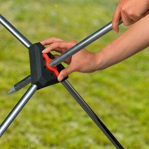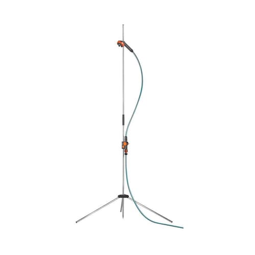 Posui um chuveiro flexível e removível, conectado a uma mangueira de 1,3 metros de comprimento, proporicionando mais liberdade para o banho no jardim. A altura é totalmente ajustável através de um simples botão. Conta com um suporte de tripé que facilita a instalação do chuveiro em qualquer lugar. Existem duas opções de jato: o spray suave para o banho ou o spray de névoa para um refresco suave.