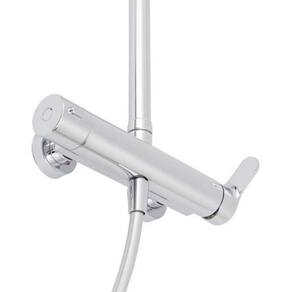 Na parte superior da peça existe a ducha circular, que permite regular a posição. Ela ainda tem uma coluna com design tubular, um modelo clássico para quem deseja agregar à decoração.