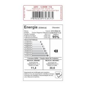 Especificações Técnicas: Acompanha Chuveirinho: Sim Mangueira: 1,6 Metros Seção Mínima do Condutor (mm²): 4,0(127V) e 10,0(220V) Disjuntor (Amperes): 32A(127V) e 60A(220V) Distância máxima do quadro de distribuição (Metros): 25m (127V) e 26m(220V)