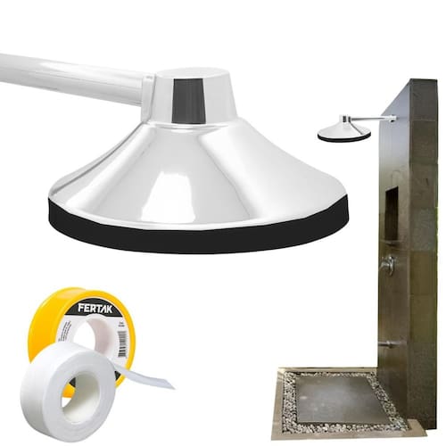 O chuveiro se destaca pelo seu design moderno e robusto, feito de materiais de alta qualidade que garantem durabilidade e resistência às intempéries. Com um jato de água amplo e confortável, ele oferece um banho agradável e eficiente, transformando seus momentos ao ar livre em uma verdadeira experiência relaxante.