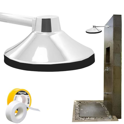 O chuveiro se destaca pelo seu design moderno e robusto, feito de materiais de alta qualidade que garantem durabilidade e resistência às intempéries. Com um jato de água amplo e confortável, ele oferece um banho agradável e eficiente, transformando seus momentos ao ar livre em uma verdadeira experiência relaxante.