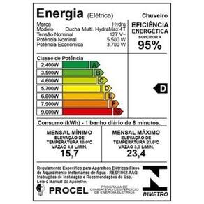 Hydramax 4T Seu design compacto foi desenvolvido para facilitar a aplicação em banheiros compactos e ainda trazer um design diferenciado. O sistema multitemperatura permite um determinado número de opções para encontrar a temperatura certa da água e tomar um banho confortável, seguro e econômico em qualquer estação no ano. Sistema Multitemperatura 4T Permite que você tenha quatro opções para encontrar a temperatura certa da água e tomar um banho com muito mais conforto, segurança e economia em qualquer estação do ano. Banho com jato intenso A ducha Hydramax 4T possui um espalhador especialmente projetado para que você tenha um banho confortável com a intensidade e a quantidade certa de água, evitando desperdícios. Design Espalhador projetado para um banho com maior vazão de água e conforto. Características do produto: Ducha tipo: Multi Temperatura Dimensão: Dimensão do produto sem embalagem A x L x C : 10,5 X 14,5 X 11,5 Cm Dimensão do produto com embalagem A x L x C : 34 X 25 X 28 Cm Peso: Peso produto sem embalagem: 455 g Peso produto com embalagem: 490 g Potência: 220V - 5700W : 1 Ano Ofertada pelo fabricante Marca: Não Informado Ean: 7896650418691