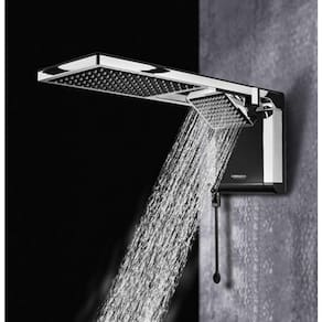 Na opção de banho com ducha, o jato é direcionável e concentrado, inclinando-se na direção desejada, enquanto o chuveiro proporciona um jato mais espaçado, por meio de um espalhador de grande proporção.