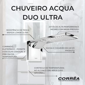 Chuveiro Lorenzetti Acqua Duo Ultra 7800W Branco com Cromado 220V - A Linha Acqua Ultra conta com a exclusiva Resistência Loren Ultra, a primeira resistência plana do mercado
