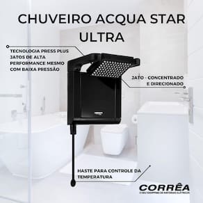 Chuveiro Lorenzetti Acqua Star Ultra 7800W Preto 220V - A ducha Acqua Star Ultra traz a opção de um jato mais concentrado e direcionável.
