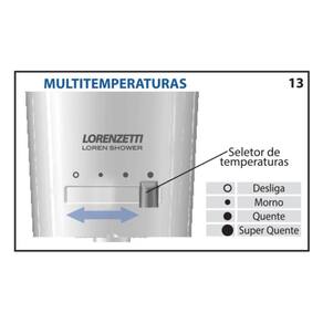 Chuveiro Lorenzetti Elétrico Loren Shower Multitemperatura 5500W Branco 110V - O Loren Shower Multitemperaturas possui quatro opções de temperaturas e garante conforto e economia em todas as estações.