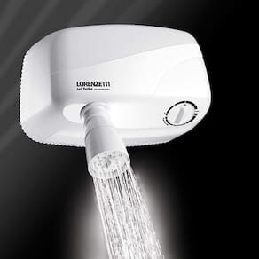Chuveiro Lorenzetti Jet Turbo Multitemperaturas 7800W Branco 220V - Desenvolvida com pressurizador integrado, garante aumento de volume e pressão da água.